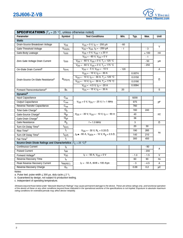 2SJ606-Z-VB Datasheet P-Channel 60 V (D-S) 175 °C MOSFET