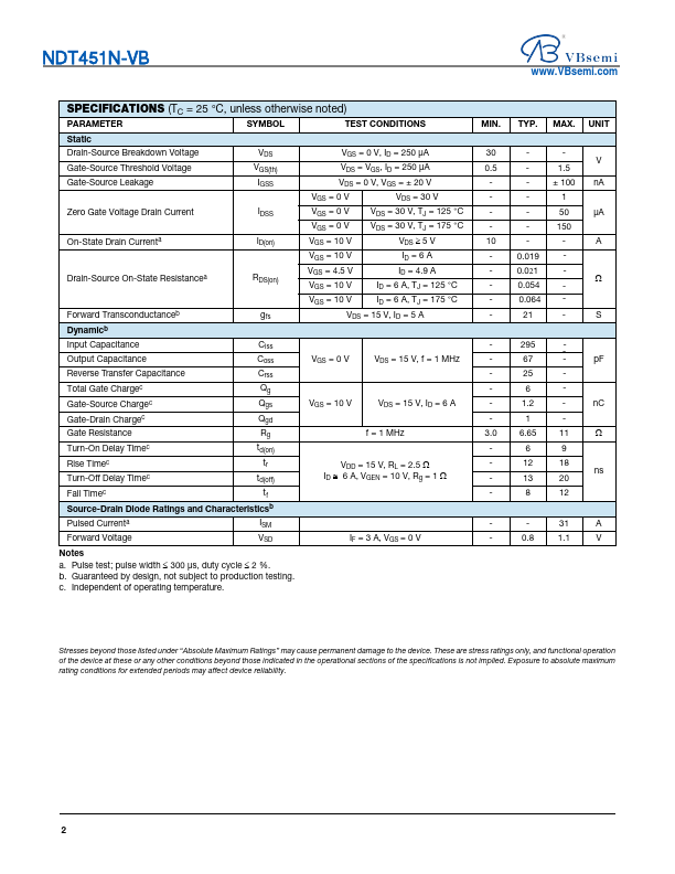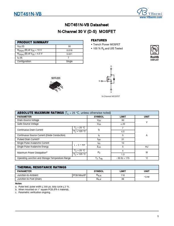 NDT451N-VB Datasheet N-Channel 30 V (D-S) MOSFET