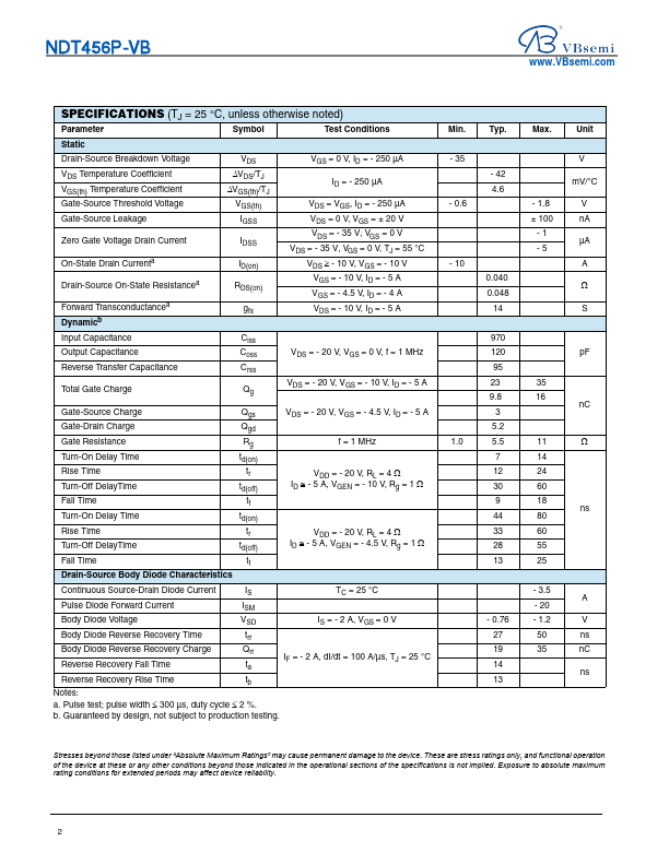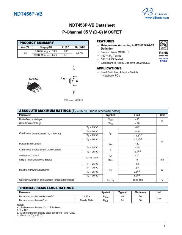 NDT456P-VB Datasheet P-Channel 35 V (D-S) MOSFET