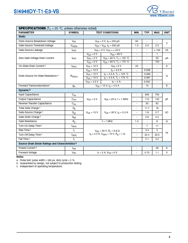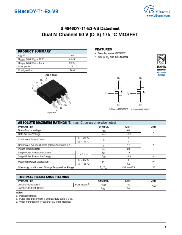Dual N-Channel 60 V (D-S) 175 °C MOSFET