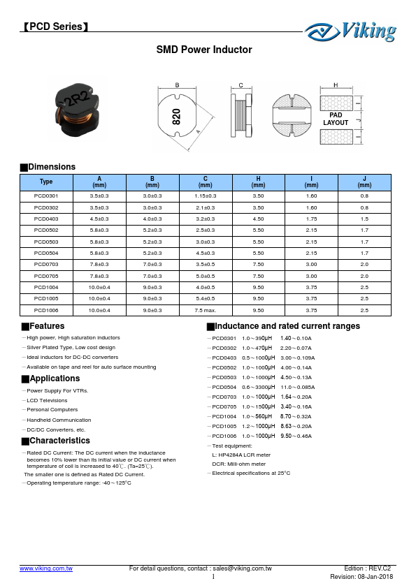 This datasheet PDF includes multiple part numbers: PCD0403, PCD0301. Please refer to the document for exact specifications by model. |