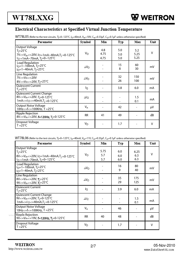 | WT78L06 | Positive Voltage Regulator |