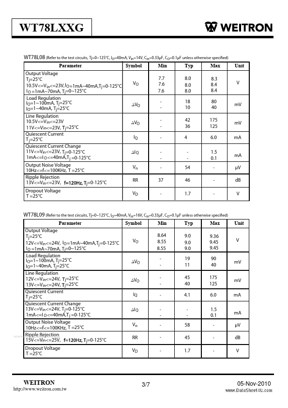 | WT78L08 | Positive Voltage Regulator |