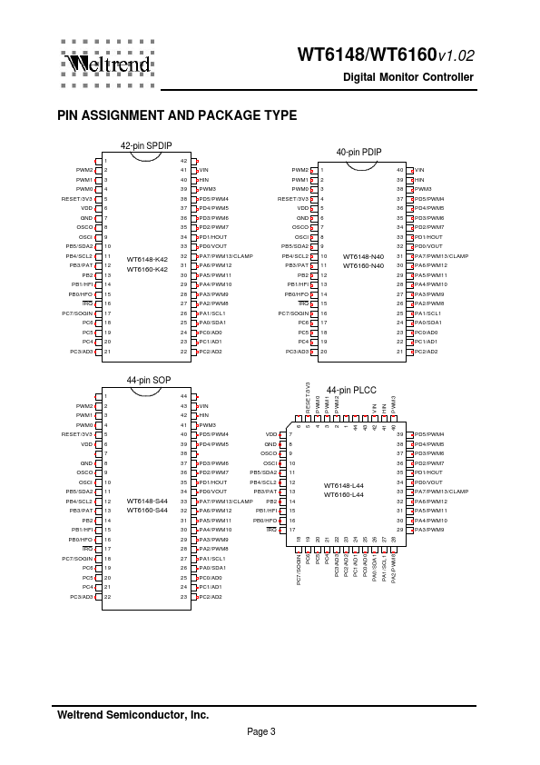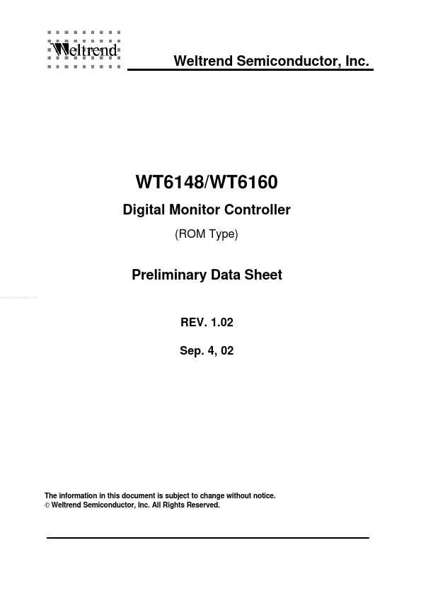 The WT6148/ WT6160 is a microcontroller for digital controlled monitor.