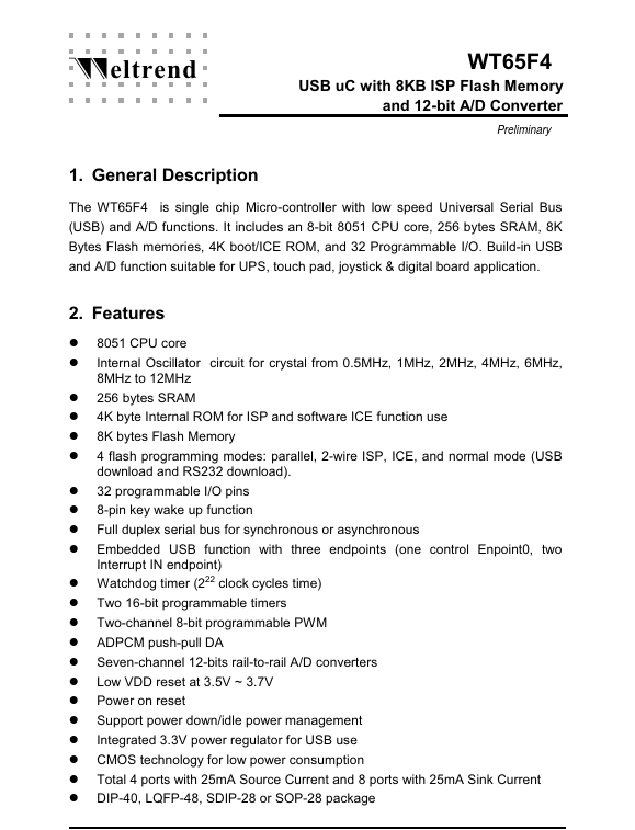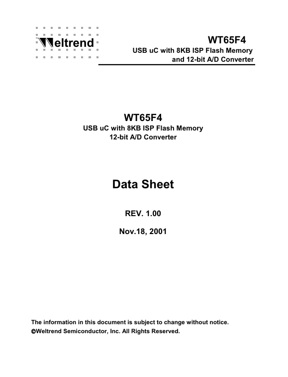 Other Datasheets by Weltrend Semiconductor