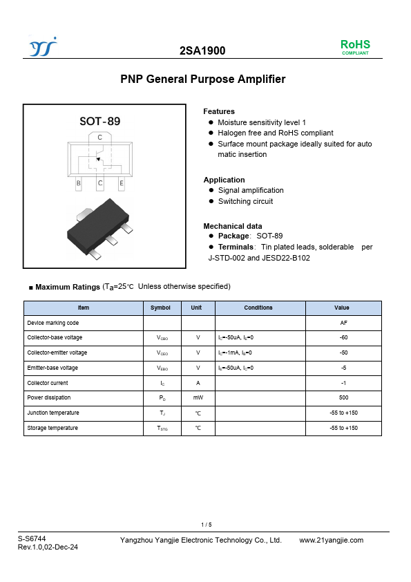 Mechanical data Package:SOT-89 Terminals:Tin plated leads, solderable per J-STD-002 and JESD22-B102