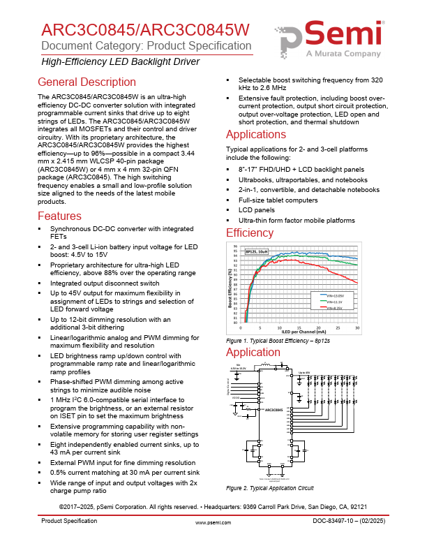 | ARC3C0845 | High-Efficiency LED Backlight Driver |