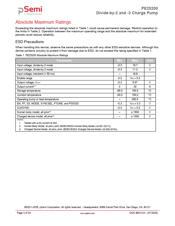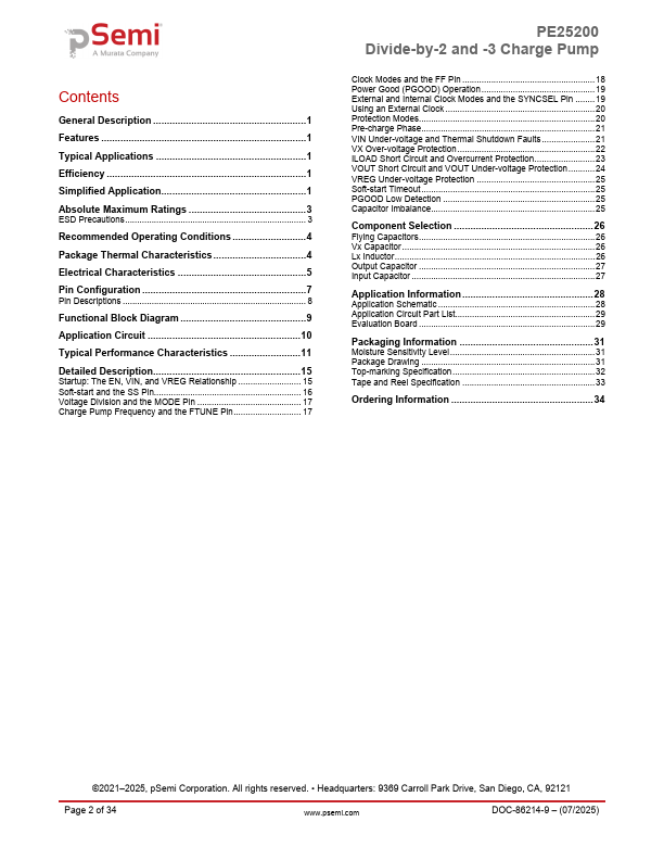 The PE25200 supports an input voltage range of 5.5V to 10V in divide-by-two mode and 8.2V to 15V in divide-by-three mode.