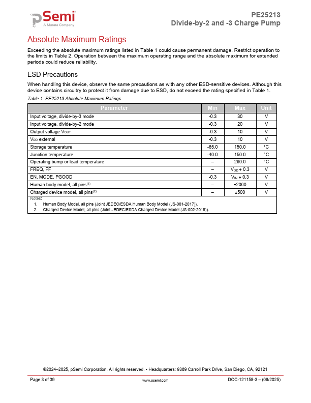 | PE25204 | 6A Charge Pump / Capacitor Divider |