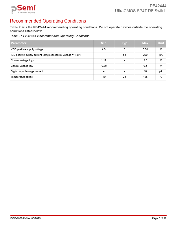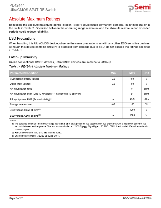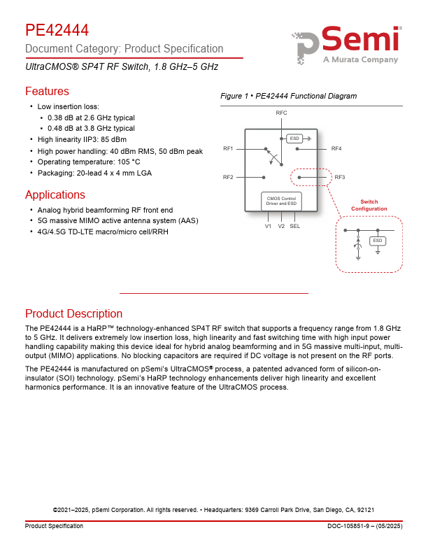 | PE42445 | High Isolation UltraCMOS SP4T RF Switch |