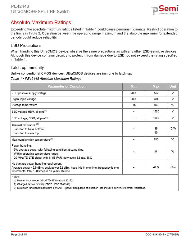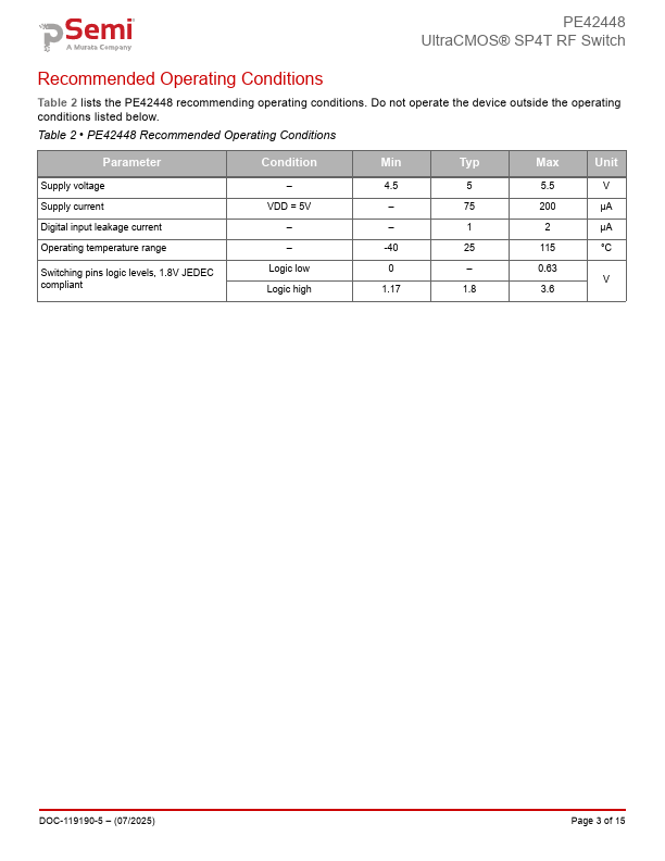 | PE42445 | High Isolation UltraCMOS SP4T RF Switch |
