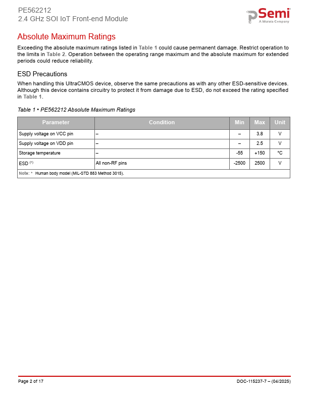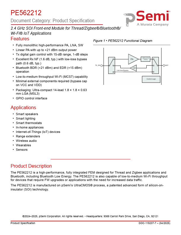2.4 GHz SOI Front-end Module for Thread/Zigbee®/Bluetooth®/